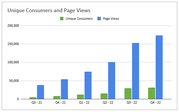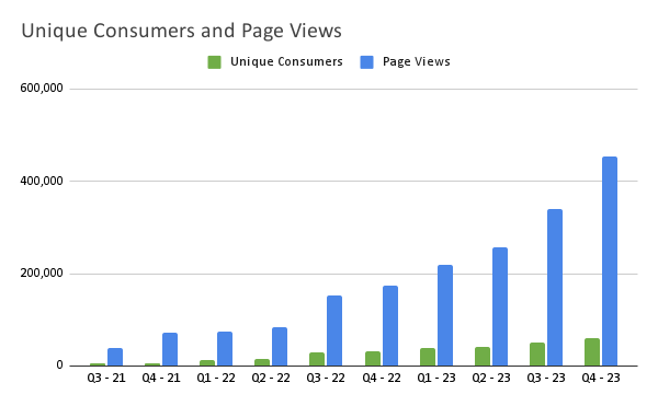 - Consumer community grew 280% (Q4), with 219% growth in page views.