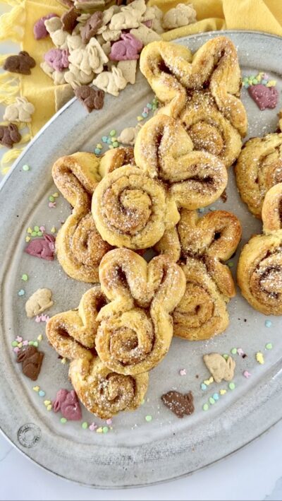 A fun spin on the classic Christmas morning sweet roll! After you roll up the dough, instead of cutting that into individual segments, simply use some kitchen shears and make angled, forty-five degree cuts along one side, then shape into a circle! Once it’s baked, frost and decorate as desired then serve! It also can double as a table centerpiece for a festive holiday tablescape! Use my G/F CRUFFIN recipe or my STRAWBERRIES N' CREAM ROLLS recipe if you don't need g/f!