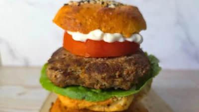 - Cook burgers for 40 minutes, flipping halfway through. Burgers should be dry to touch with golden-brown tops and edges when ready. Allow to cool 10 minutes before enjoying. I suggest cooling them on a wire rack if you have it, to keep moisture from building underneath them.