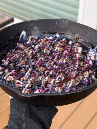 - pour bbq blueberry sauce on top of chicken & simmer for 8-10 minutes or until sauce thickens; adding any additional water as needed.
