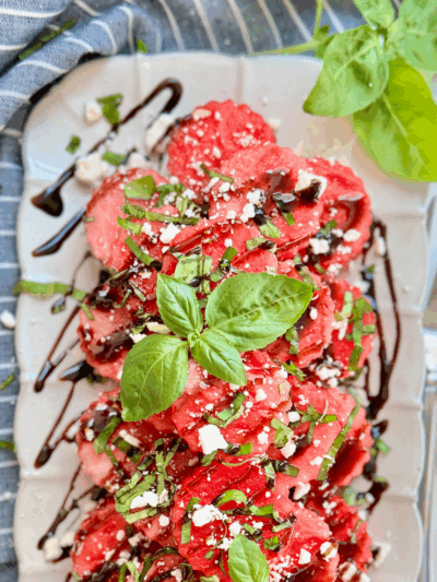 It's that time of year when all the tomatoes are starting to ripen on the vine, so it's a perfect time to make this! You may even have some fresh basil growing in your garden as well!! It uses the GLUTEN FREE FRENCH BREAD recipe as the base and comes together in minutes. It's easily one of the most desirable appetizers you will find yourself bringing to all the neighborhood or family BBQ's this summer. Plan on taking home an empty serving platter, you will NOT have any leftovers!