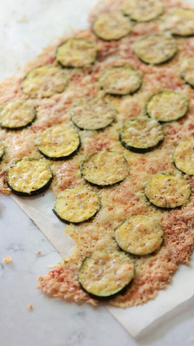 - Sprinkle the zucchini with the parmesan cheese shavings and minced parsley.