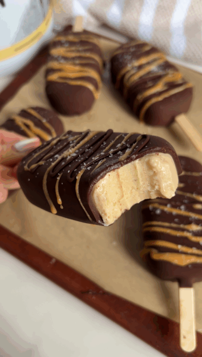 - Stir together yogurt and vanilla protein powder (feel free to omit. Thick Greek yogurt alone or with sweetener will still be thick enough) then pour overtop red layer of popsicles