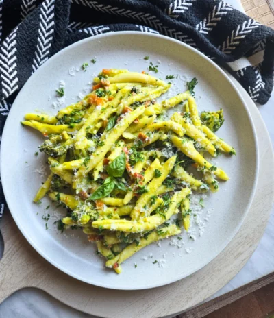 - Taste your pasta and season with salt / pepper to taste if needed / desired. Serve your pasta garnished with heaps of grana padano, fresh parsley, and basil. ENJOY!