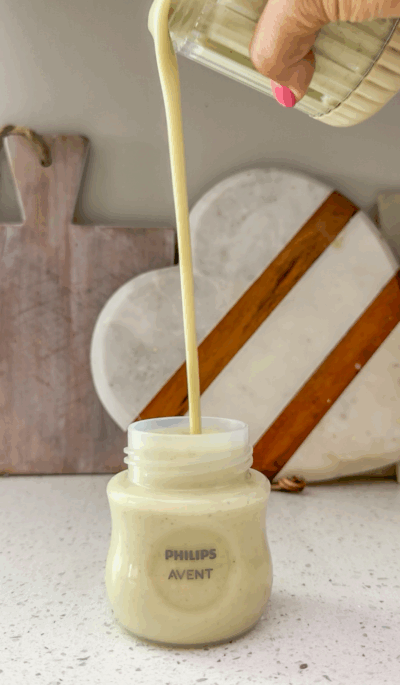This nighttime smoothie will help promote a better nights rest for your baby. It has natural vitamins and minerals that allow for the body to relax, healthy fats to keep their blood sugar stable and its filling the body with nourishment. This is a great one!