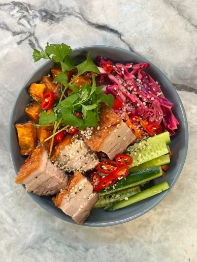This anti-inflammatory Bircher muesli is packed with omega-3-rich seeds and nourishing wholefoods to leave you feeling satisfied and glowing from the inside out. A creamy base of oats, linseeds, hemp seeds, chia, and coconut flakes is soaked in milk and yoghurt, lightly spiced with cinnamon for warmth. Juicy roasted plums—perfectly tart and sweet—caramelised in a fragrant bath of orange juice, zest, and just a touch of sugar. Serve chilled or gently warmed.