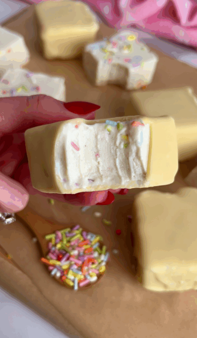 - Fold in chocolate chips, roll into balls, and then press chopped up peanut butter cups & naturally colored chocolate gems on top of cookies (I used lakanto chocolate gems and unreal snacks peanut butter cups)