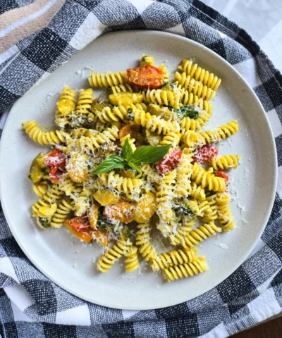 Fresh pesto really is one of the most fabulous things to always have on hand. This pasta dish comes together easily and features pops of flavour from sundried tomatoes and dreamy burrata cheese. Link to my pesto recipe along with garnish suggestions available in notes section!