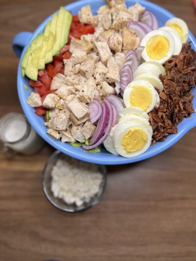 cobb salads are so hearty & delicious. here is a southwestern style spin on the typical cobb. also, if you can find the fiesta cheese crisps, they really are the star of the show!