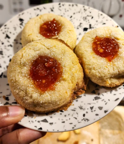 - Dollop the blood orange jelly in small spoonfuls across the avocado.