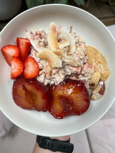 - Serve in a bowl with a drizzle of extra honey, fresh berries and banana or other toppings of your choice (any nuts dried fruit, seeds, fruit of your choice and enjoy!