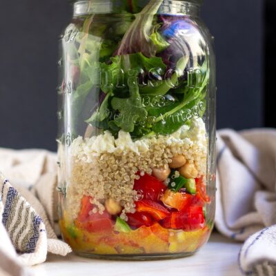Serve cold or at room temperature. Store in the refrigerator for up to three days. This salad is best when allowed to sit for thirty minutes before serving as it allows the flavors to combine, but is still good when served immediately. I prefer to cook the quinoa in either vegetable broth or chicken broth to increase the flavor. Feel free to add in a protein of choice and make this a main course meal!