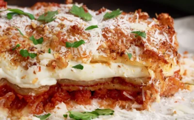 - Let the lasagna rest for 10-15 minutes to firm up before slicing. Garnish with fresh basil leaves for a festive touch, and serve warm.