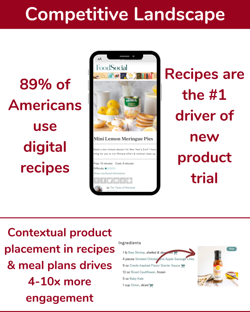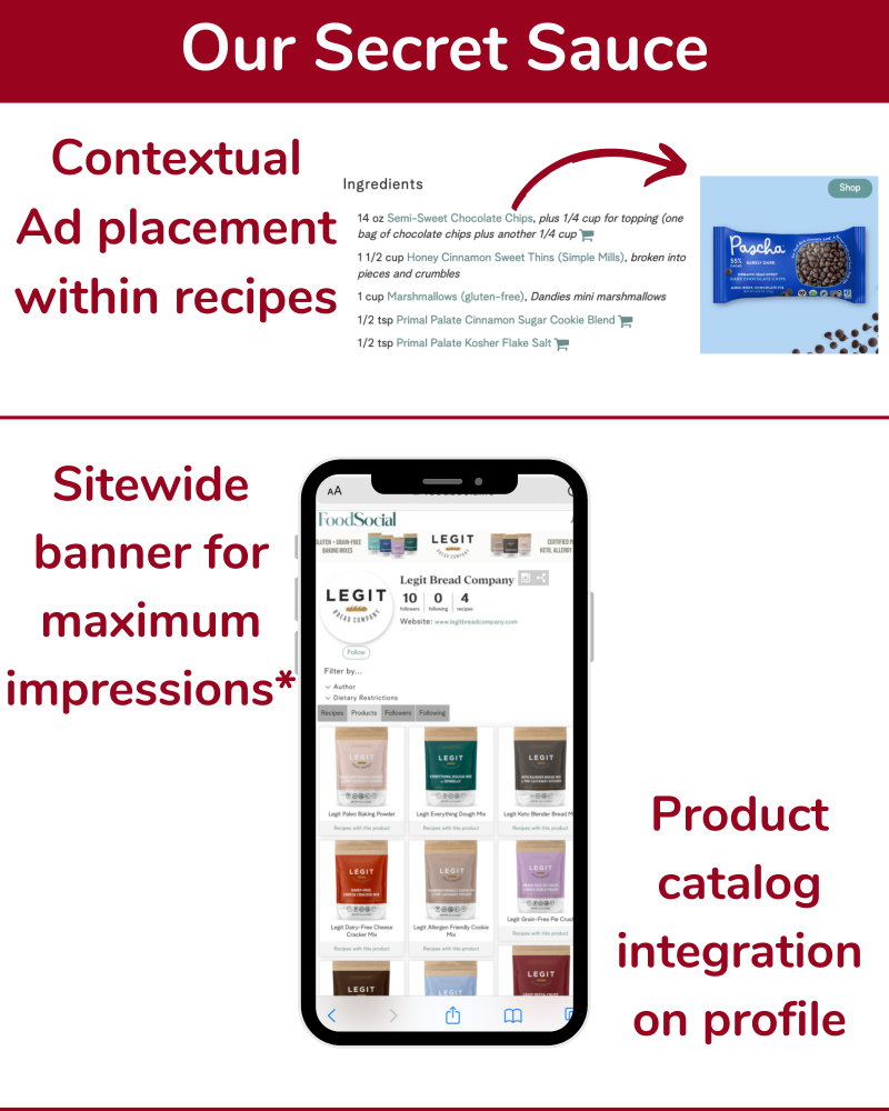 FoodSocial is a recipe-sharing platform for creators and brands with amazing contextual advertising baked in for brands (yes, right into recipes!) There’s a clear value proposition for brands, especially those focusing on ecommerce and wanting to meet the customer right where they’re meal planning or looking for recipes.