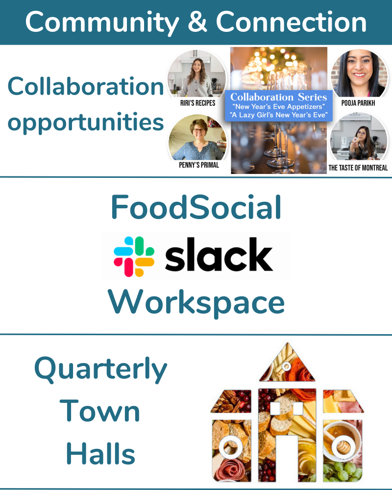 Creators have multiple ways to connect and collaborate with other creators and brands on FoodSocial. Ongoing collaborative work groups tackle seasonal and special recipe topics, with replays available on YouTube and FoodSocialTV. We also offer a special workspace on Slack for all FoodSocial creators and brands to facilitate easy communication. And finally, all creators and brands are encouraged to attend quarterly Town Halls, which give everyone a chance to provide input on current and future development projects.
